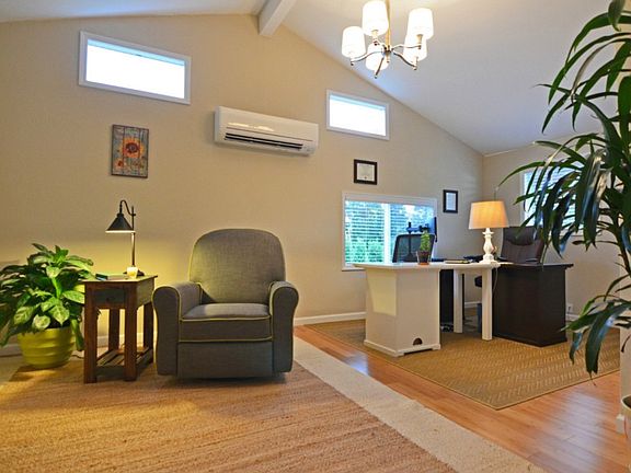 Light & bright, this fully updated and well cared for home on a large sunny lot boasts numerous updates & features: new vinyl windows, newer roof, brand new ductless heat pump system that provides heat + A/C, recent insulation work & new water heater! Beautiful bamboo floors throughout main living areas. Updated bathroom & kitchen w/cherry cabinets, slab granite counter tops & SS appliances. French doors lead to a large office area/family room w/vaulted ceilings. Patio & large, private yard.