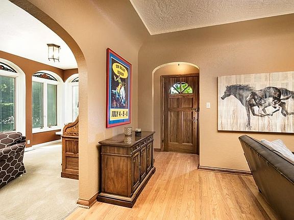 Nestled in the trees convenient to downtown and filled with the traditional charm of hardwood floors, arched doorways, and coved ceilings. Kitchen opens to the stamped concrete patio covered with a pergola and complete with an outdoor fireplace. Large master suite extensive closet space, reading area and bath. Finished basement with family room, exercise room with remodeled bath. Sure to impress!