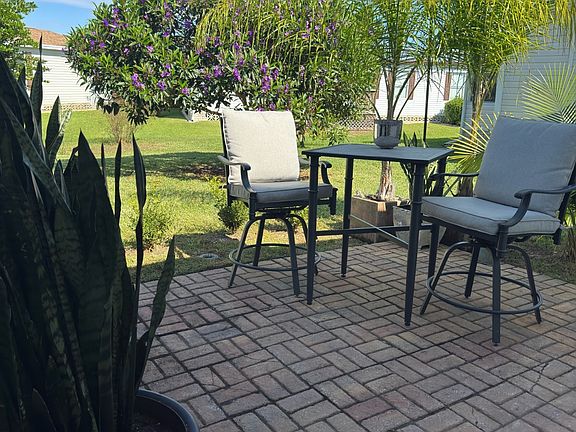 Welcome to this stunning, move-in ready home offering 1,624 sq. ft. of living space, plus an additional front Florida room that expands your total living area to 1,924 sq. ft. Step inside to find a bright, open-concept floor plan featuring a spacious kitchen, dining, and living area-perfect for entertaining friends and family. This home is beautifully and professionally decoratedand being sold fully furnished. The large master suite includes an en-suite bath, while two additional bedrooms provide ample space for guests or a home office. Enjoy the convenience of a separate laundry room, double covered carport with a new roof, a wide double driveway, and an extra-large storage shed. Recent updates include a new roof (2022), 1-year-old water heater, and an 11-year-old A/C system that's been well maintained. This home combines comfort, style, and modern updates-ideal for those seeking a relaxed Florida lifestyle in a friendly 55+ community.
