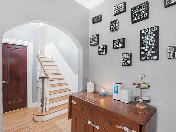 Full of character inside and out, this thoughtfully maintained 3-bedroom, 1.5-bath home sits in a sought-after neighborhood with mature trees and convenient access to Ridge Rd., Indianapolis Blvd, and 94. The main level features a spacious living room with a cozy fireplace and hardwood floors, a bright kitchen and formal dining room, a half bath, and a main-floor bedroom with warm wood paneling that adds vintage charm. Upstairs you'll find the second bedroom, a full bath, and the primary bed with a large, open closet area. The lower level offers great extra space, including a finished office area, laundry room, bonus shower, storage, and a small workshop in the mechanical room. Hardwood floors, high ceilings, and updated mechanicals give the home a solid, well-cared-for feel. The sunroom opens out into the fenced backyard with deck and patio space for relaxing or entertaining, plus a detached two-car garage.