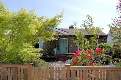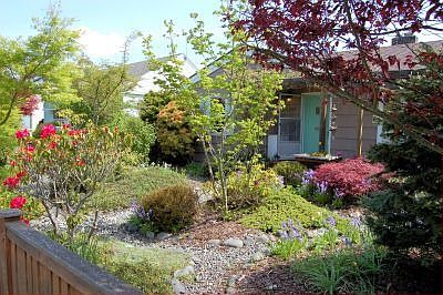 Inspired Columbia neighborhood bungalow is in turn-key condition. Walk through the gate into a beautiful yard of rock paths and landscaped islands, then under a wisteria-draped trellis to the front door. Inside you will find extensive hardwood floors, and an impressive rock fireplace with rough-hewn mantel and shelves. Charming period details throughout include arched doorways, built-in cabinets, original light fixtures and a retro-cool kitchen. Finished office in half of detached garage.