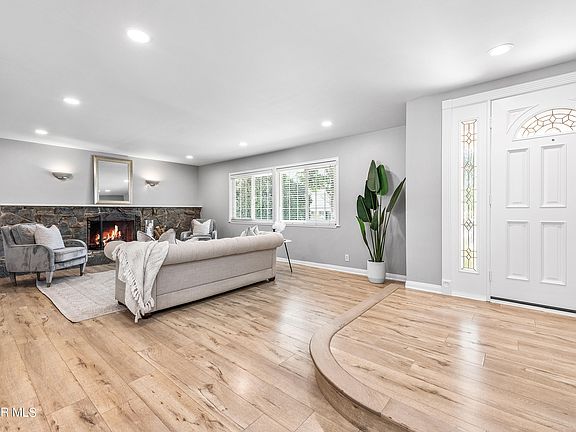 Calabasas charmer with large lot and brand-new designer kitchen.  Located on a peaceful street in Saratoga Hills, this lovely home features a remodeled interior and a huge, beautifully landscaped backyard.  The home is freshly painted throughout, with newer hard flooring downstairs and fresh new carpet upstairs.  The newly remodeled kitchen is breathtaking, with quartz counters, upscale stainless appliances (including  refrigerator), lots of cupboard space, a bay window, and a walk-in pantry.  The downstairs area also includes a large family room with fireplace and overhead lighting, a living room, a dining area, a sizeable bedroom with an adjacent remodeled full bathroom, and a laundry room with washer/dryer included.  The upstairs has three bedrooms, including a master with walk-in closet, and a remodeled bath with separate soaking tub and large shower.  The private backyard offers a pool and patio, and a large grassy area with lovely trees.  The home also includes a three-car garage, a newer roof, a newly painted exterior, and central AC.  The home is convenient to the freeway, shopping areas, and award-winning Las Virgenes schools.