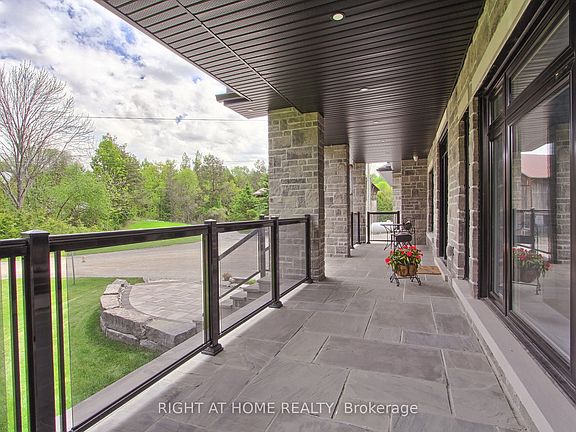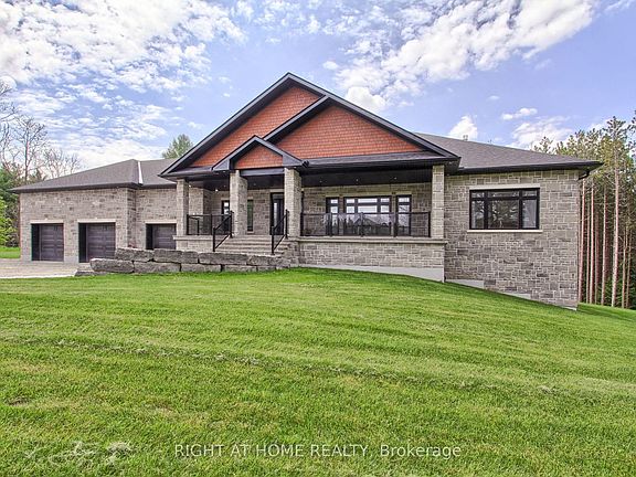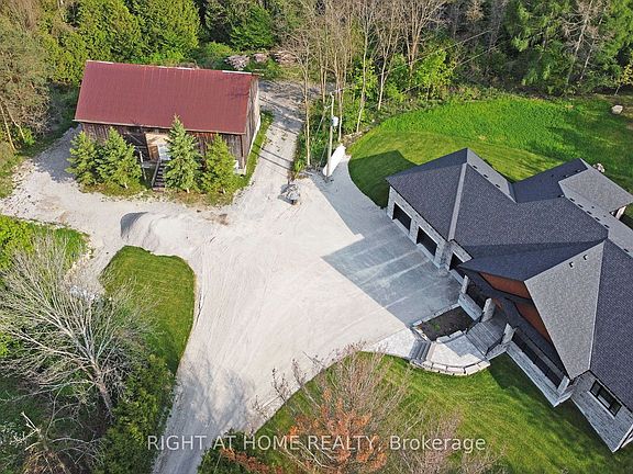 Welcome to this exceptional 3+2 bedroom, 5 bathroom custom-built estate home set on a private 3.25-acre treed property, offering luxury country living just minutes from Hwy 400, Barrie, Bradford, Cookstown & Innisfil. A long, tree lined driveway leads to over 5,500 sq.ft. of premium finished living space, designed for comfort, style, and energy efficient living. Built with ICF construction for superior strength & efficiency, this home features soaring 10-ft ceilings, oversized windows, and a bright open concept layout. The great room offers stunning vaulted ceilings and a beautiful fireplace, creating a warm and inviting atmosphere. The chef's kitchen includes a large island, premium appliances, and walkout to a spacious deck, perfect for entertaining. Formal dining area for seamless hosting.The thoughtful split bedroom layout enhances privacy. The luxurious primary suite includes a walk-in closet, spa-inspired ensuite, and private deck access. Two additional main floor bedrooms share a stylish Jack and Jill bath. Main floor office, powder room, and laundry/mudroom with garage access complete this level.The fully finished walkout lower level offers ideal in law or multi generational living with a second kitchen, bright family room with fireplace, two large bedrooms with Jack and Jill bath, an additional full bath, and garage access. Excellent flexibility for extended family, guests, or future rental potential. Outside, enjoy expansive lawns, mature forest views, and a charming barn (sold as-is) ideal for hobby use, storage, or future creative conversion. Peaceful rural setting with modern convenience, close to shopping, schools, dining, Tanger Outlets, and top commuter routes.This one of a kind property combines craftsmanship, privacy, and space in a premier countryside location. Truly the perfect blend of elegance, efficiency, and multi-family potential your private estate retreat awaits.