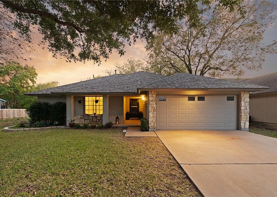 Lovely 1 story home on large lot in desirable South Austin location! Many recent updates including all new siding, roof, carpet, and interior & exterior paint. Open layout with very spacious family room with vaulted ceilings & fireplace. Breakfast room is open to the kitchen & living. Large primary bedroom & bath with dual vanity sinks & walk-in closet. 4th bedroom is converted garage space - could also be second living space or easily converted back as well. Huge backyard w/ large trees next to easement. Close to schools, shopping, restaurants & downtown ATX!