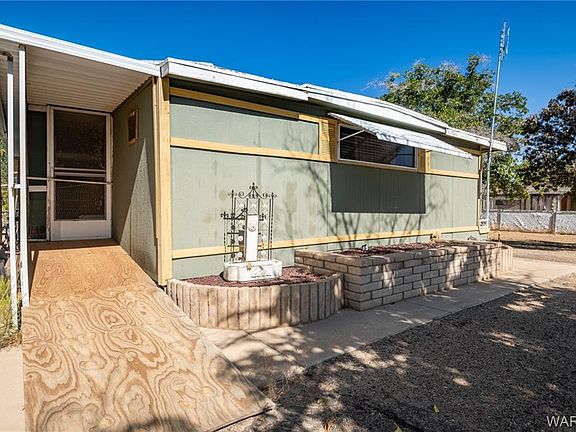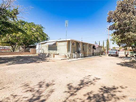 Has lots of shade trees and 2 RV gates on large double lot, so lots of room for your toys. Both lots have septic installed. Only 1 septic has been actively used. Has sprinkling system, but has not been used. **Newly remodeled kitchen with gas stove. Enclosed back patio, covered patio in front, open kitchen, split-bedroom floor plan. Ceiling fans through out. Laundry room added on. Well maintained inside and out. CASH purchase only, due to year of build and financing laws. Owner moving out of state, so may leave most furniture with full price offer. 45 min to Colorado River, Laughlin, NV, and Lake Mohave. Come check it out!