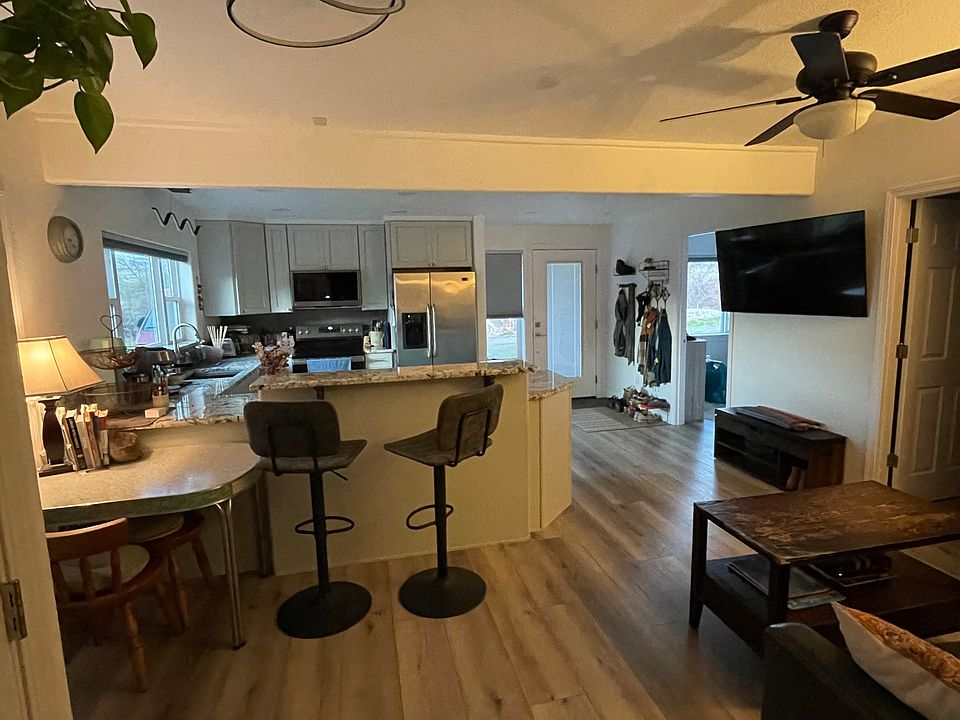 coming soon- Cute and cosy 2 bedroom, 1 bath separate addition in S Ashland, situated on 5 acres. Bear Creek is formed as Emigrant and Neil Creek come together steps from the front door. Attached to main house with owner/landlord on premises with separate entrance and 2 parking spaces. Brand new construction in 2024. Open floor plan with brand new kitchen appliances like electric stove, oven, microwave and dishwasher. Marble countertops with standing bar. Huge smart TV that swivels. Washer/Dryer. Mr.Cool mini-splits (heat/air conditioning) in each bedroom. Both bedrooms have mirrored closets. In the bathroom, a jet spa bathtub with granite tile,heated floors & towel rack, with dimmable wall mirror, and finally a toilet with a bidet (warm water :).
