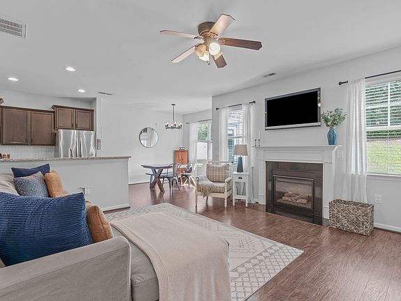 Bright & Spacious End-Unit Townhome in a Prime Location - Lives Like a Single-Family Home, Only Connected by a Small Storage Room! This beautifully designed 3-bedroom, 2.5-bath end-unit townhome offers an open and airy layout with soaring ceilings and abundant natural light. The spacious kitchen seamlessly connects to the living area, where a cozy gas fireplace adds warmth and charm. Modern hardwood flooring on the main level enhances the home's elegance, creating a seamless flow throughout. Plus a dedicated home office on the main floor makes working from home effortless. Upstairs, the primary suite features a spacious walk-in closet and an updated en-suite bath with newly installed tile flooring. Two additional generously sized bedrooms and an oversized laundry room complete the upper level. The 2-car garage provides ample storage, and the inviting patio is perfect for relaxing or entertaining. Unbeatable Location! Situated just minutes from Brier Creek, RTP, North Raleigh, and major highways, with RDU Airport only 5-7 minutes away—without being in the flight path! Enjoy the ease of low-maintenance living—NO YARD WORK!
