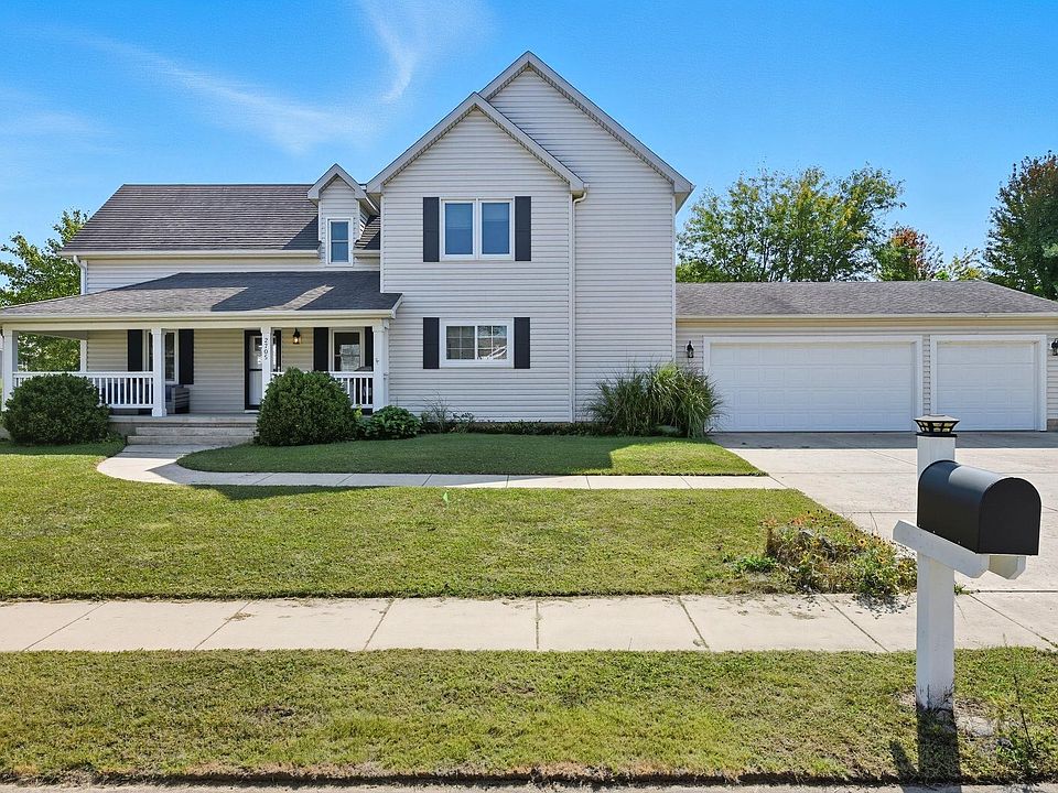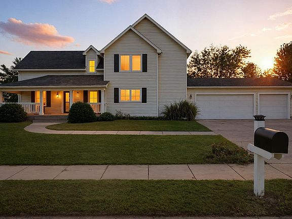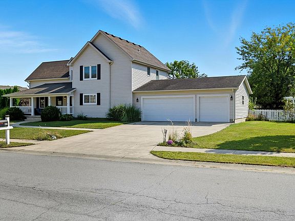 This beautifully restored farmhouse combines timeless charm with modern comfort, offering a rare opportunity to blend the old within the newer neighborhood. Originally an old farmhouse that was moved and set on a full basement foundation, the home has been completely updated inside and out. The heart of the home is a stunning kitchen featuring quartz countertops, a farmhouse sink, soft-close white cabinetry, and French doors that bring in natural light. Vinyl plank flooring flows throughout the main level, where you’ll also find transitional living spaces of dining, family room or in home office areas. Upstairs, the home offers a beautiful primary bedroom with a recently updated bathroom with large stunning shower and dual sink vanity. The other bedrooms are very specious as well as the other full bathroom The finished basement provides a large rec room and family room—perfect for movie nights, a home gym, or both—plus an additional half bath. Step outside to enjoy a generous fenced backyard with a newer deck ideal for entertaining. Practical updates include a newer furnace and everyone will enjoy extra large three-car garage, giving you both peace of mind and plenty of space. This light and bright move-in-ready farmhouse truly blends character with everyday convenience.