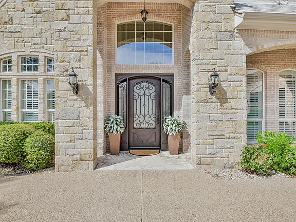Welcome to this exceptional waterfront retreat that combines timeless elegance with modern luxury. Step through the beautiful iron doors and into a home designed to impress at every turn. This home offers 4 spacious bedrooms, 3.5 bathrooms, an office, and 3 living spaces, providing plenty of room for work, play, and relaxation. The main living area showcases a breathtaking floor-to-ceiling stone fireplace, the perfect centerpiece for cozy evenings and memorable gatherings. The gourmet kitchen is a chef’s dream, featuring an island with a prepping sink, built-in microwave, upscale stainless steel appliances, a convenient warming drawer, and a butlers pantry ideal for entertaining or everyday convenience. The primary suite is a true retreat, complete with separate vanities, a jetted tub, a walk-in shower, a mounted TV, and a large custom closet. Ample amount of storage offered, the laundry is complete with cabinets, sink and built in ironing board. Upstairs, a large game room and media room await complete with cabinets, a sink, and space for a refrigerator. The fourth bedroom opens to a private balcony, offering beautiful views of the pool and lake and a perfect spot to unwind. Step outside to your backyard paradise, where you’ll find a sparkling pool and spa overlooking the lake, a boat dock, and an open patio with a built-in smoker and grill. The wrought iron fencing is thoughtfully designed with a lower panel to keep small pets safe while maintaining the open lake view. Four rooms provide direct access to the pool area, blending indoor and outdoor living seamlessly. Additional features include a 3-car garage, new flooring throughout the downstairs, and a new upstairs AC unit installed October 2025. This home truly embodies luxury lakefront living elegant, functional, and ready to enjoy.