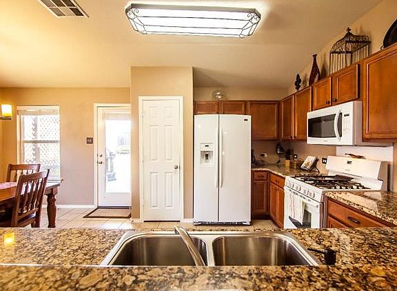 Immaculate home w/pride of ownership in a great community! Meticulous upgrades such as Granite Counters, Hard Tile & Laminate Flooring,Upgraded light fixtures & switch plates, custom paint, ceiling fans in every room, extended covered patio w/ceiling fan looking out to well manicured landscaped yard. Kitchen w/bar and bright breakfast area-Texas size living space w/lots of natural light-Large Master Retreat w/dbl vanity, garden tub, large walk-in closet and walk-in shower-Walking distance to elementary.