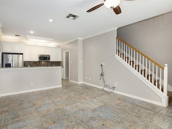 Charming 2 bed, 1.5 bath recently updated townhome located in Midtown. Custom built-ins & shutters in the living room which is open to kitchen. Kitchen features breakfast bar and granite counters, stainless dishwasher, microwave & fridge and breakfast bar. Lots of lighting here including backlit above-cabinet rope lights for ambiance. Pantry and powder bath are located adjacent to the kitchen with access directly into a private, attached 1-car garage. Wood tread staircase leads to both bedrooms up. Oversized primary bedroom has a huge walk-in closet. Guest bedrooms is spacious with a nicely equipped walk in closet. Full sized laundry up with additional walk in closet for more storage. Shared bath upstairs provides a jack & jill style (unattached) bath with two separate vanities - perfect for roommates. Private and gated front patio with privacy-landscaped perimeter. This propery is set back on an interior lot, not on the busy street. Quiet & private! Washer/dryer/refrigerator included.