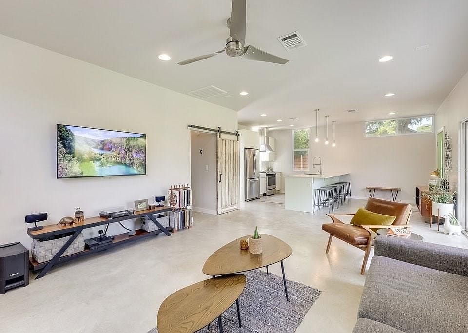 HOT HOT HOT: This 2015 built East side contemporary was designed by notable local architect (Dwell magazine, HGTV) François Lévy. It's located just around the corner from popular shops/eateries, a grocery and park areas on East 7th St. 2 beds, 2 baths + study make up this 1158sf single family home. The unique insulated detached garage with doors on both sides creates a private inner courtyard. Roll up the garage door and instantly have a shaded "cabana" for entertaining. Other features include a metal roof, dual zone AC, high ceilings, concrete/wood flooring, tankless water heater, spray foam insulation, massive balcony, low maintenance yard, dual vanities, walk-in shower, and lots and lots of windows strategically placed for maximum light.