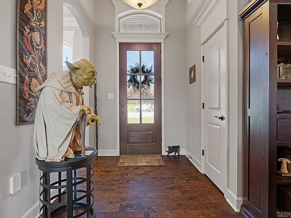 True affordable luxury. Make your way to Magnum Cove. Seated on a sizable lot in a cul-de-sac of a wonderful neighborhood, this home is ready for its next owner. Upon entry you're greeted with dramatic ceilings 12ft in height, engineered hardwoods, & array of natural light. Elegant details throughout like doorway pediments, crown molding, and coffered ceilings in every bedroom truly make this one a showstopper. You'll enjoy living in the open concept floor-plan that employs wonderful functionality w/ no wasted space. The kitchen is storage and counter space galore + an eating/sitting nook. Enjoy evening meals with friends & family in the formal dining. An impressive wood-burning fireplace is flanked by grand french doors 8 ft tall. Split floor plan, your primary suite is just off the kitchen where coffered ceilings welcome you. At the primary bath, you'll love double vanities, a walk in shower, jetted tub, & walk in closet. At the other side of the home, you'll find your 3 guests beds with a tasteful guest bath at the middle. A covered back patio makes for a great hosting space or a quiet place to relax. Don't miss this beautiful home!