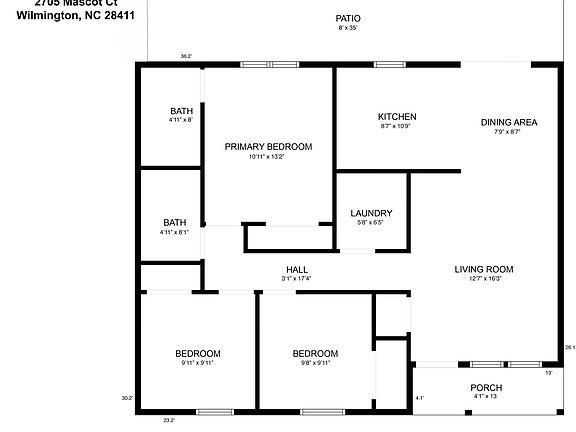This well-maintained 3-bedroom, 2-bathroom home is located on a quiet cul-de-sac, close to Mayfaire shopping and dining, and Wrightsville Beach. Recent updates include a new roof (2018), a new HVAC system (2024), and stylish, durable LVP flooring installed throughout the home in 2023. The kitchen features updated appliances, including a new refrigerator, range, and dishwasher (2023). The interior was freshly painted in 2024, providing a clean and neutral backdrop. The large fenced-in yard offers space for outdoor activities and includes a sizable storage shed. A termite bond is in place for added protection. This move-in ready home combines modern updates with a convenient location near some of the area's best amenities.