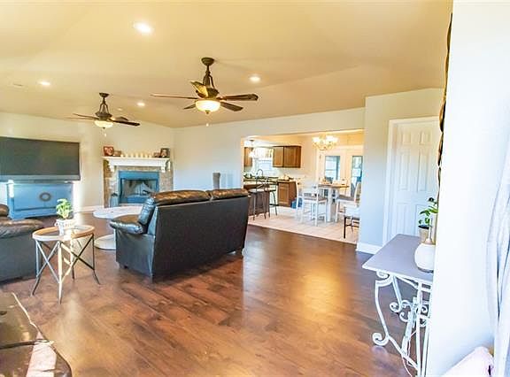 CURB APPEAL! Gorgeous home w/updates! Spacious OPEN FLOORPLAN built for entertaining; connecting living area to eat-in kitchen. NEW ENGINEERED WOOD PLANK FLOORING! NEW CARPET ALL BEDROOMS! FRESH PAINT! GRANITE COUNTER TOPS, pantry, plenty STORAGE, gas stove. Wood burning fireplace. Spacious bedrooms. Owner's suite has walk-in closet, garden tub w/separate shower. Beautiful clawfoot tub in 2nd bath. Large screened patio for parties. Fenced in yard w/greenspace behind. Relax on the front porch. X FLOOD ZONE!
