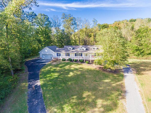 A one of a kind custom 3BR 3Ba basement rancher with separate living quarters on 3.82 acres. This home has something for everyone. Enjoy the views from your spacious rocking chair front porch. Open main level concept with split brs. Plenty of garage space with a 2-car drive through on main and 2-car down with circle driveway. Large owners suite with full bath, walk-in closet & laundry on main. Downstairs features large open rec rm space with full bath, kitchen & plumb for laundry along with walkout & garage access. Upgrades: Granite counter tops, Central Vac, wired for security & set up for propane fireplace & valve on porch for gas grill. Propane Tank not present. Flooring allowance negotiable w/acceptable offer. New Grey Roof, painted shutters -front door & master br painted April 2018