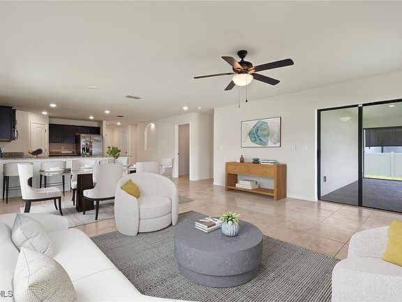 BACK ON MARKET – FRESHLY PAINTED! Built in 2021, this home feels brand new without the new construction price tag. Step inside to soaring vaulted ceilings, modern finishes, and abundant natural light that make every room feel open and inviting. Fresh interior paint enhances the move-in ready appeal. Outside, enjoy a completely fenced backyard with plenty of space for a pool, entertaining, kids, or pets. With a clean, contemporary look and a layout designed for today’s lifestyle, this home delivers comfort and style in one of Cape Coral’s growing areas. Motivated sellers—bring all offers!