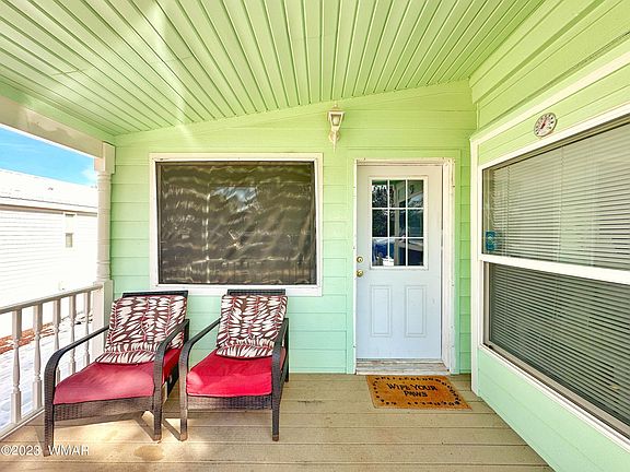 Welcome to this charming 2 bedroom and 1 bathroom well maintained home has all the features to starting living in the White Mountains now! . Interior has an open spacious living room and kitchen has plenty of cabinets, counter space, and storage. Comes with central heat and A/C. Laundry inside. Plenty of storage with shed in the back. Exterior boasts covered deck and metal roof. The HOA covers water, sewer, road maintenance and community activities. Contact me for a personal tour!