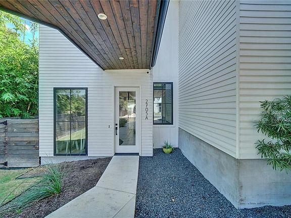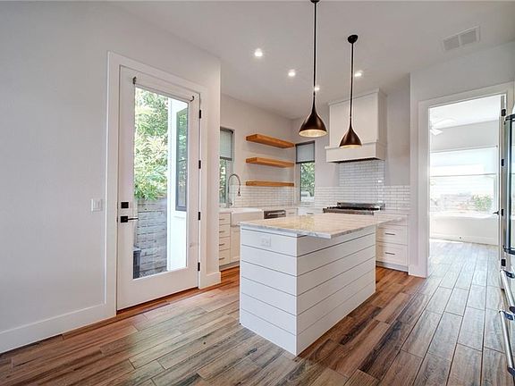 Stunning condo in the heart of South Austin! Designer touches in every space - soaring ceilings on first and second floor, durable wood-look tile throughout, Bertazzoni appliance package in chef inspired all white kitchen, custom range hood, marble counters on the center island, quartz around perimeter carries through both bathrooms. You will love the light in this home! All windows and doors have pull down shades for privacy. Private driveway, carport, and fenced backyard. Nest cams, refrigerator, washer, and dryer convey.