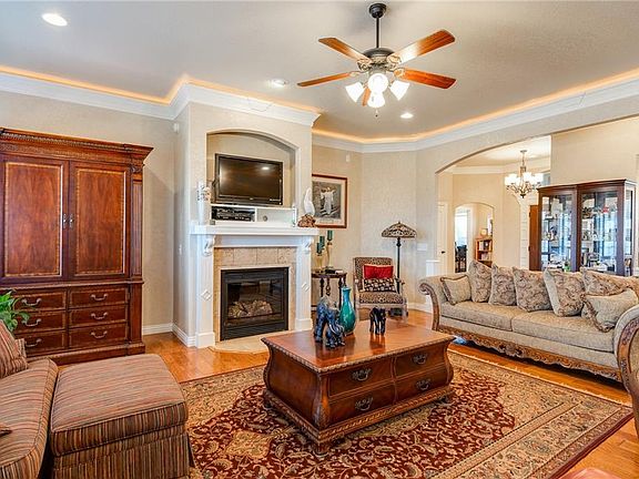 Wonderful brick home with great landscaping & 3 car garage! Formal dining and an office or additional bedroom right off the entry. Spacious open concept living room with tall ceiling, recessed lighting, wood flooring and gas log fireplace. Beautiful kitchen has coffered ceiling, granite counters, large island, gas cooktop, eat-in area, lots of outlets, and an enormous hidden pantry! Master has trey ceiling, walk-in closet with built-ins, dual vanity, jetted tub & separate tiled shower. Jack & Jill bath between 2nd & 3rd bedrooms with shower/tub combo. Central Vac. Enjoy the beautifully landscaped backyard (no houses behind property) and sit out under the covered patio while sipping your drink. This house won't last long! Come see it now.