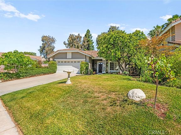 This stunning single-story home sits on a quiet cul-de-sac in the highly sought-after Northbridge community of Valencia. Thoughtfully upgraded throughout, it features durable wood-look porcelain tile flooring, high ceilings, and an open, airy layout.The spacious living room features a stone fireplace and a large bay window that fills the space with natural light. A separate workspace offers a quiet nook for remote work or study. The heart of the home is the beautifully upgraded kitchen, outfitted with premium Thermador and Bosch appliances, crisp white shaker cabinets with soft-close hinges, granite countertops, and a handcrafted subway tile backsplash—making every meal a joy to prepare. Enjoy meals in the light-filled dining area overlooking the serene backyard—complete with lush landscaping, patios, a fountain, garden space, and a 220V hookup for a future jacuzzi. The primary suite offers direct backyard access and a remodeled bath with a custom tiled walk-in shower and marble vanity. The second bedroom includes a built-in closet system, and the second bath features a Jacuzzi soaking tub and matching marble vanity.