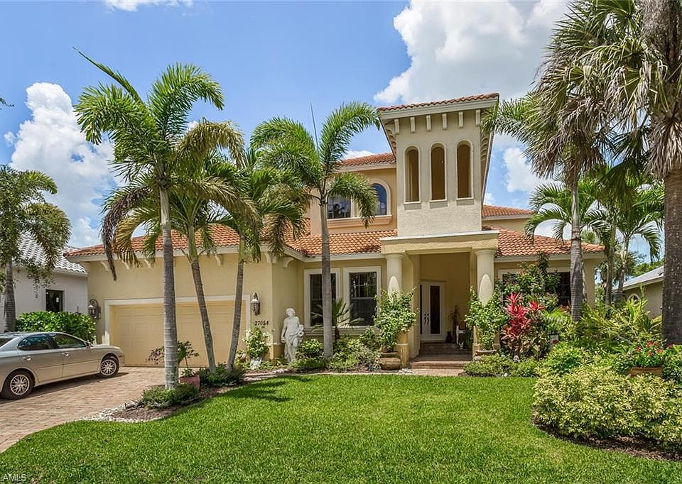 Welcome to your new home in Bonita's river access gated community of Serrano! Here is your opportunity to own a one of a kind custom estate pool home with 3 bedrooms and a den, in such a quiet community, yet just minutes from a variety of shopping and beaches. A grand foyer and a stunning staircase with a unique wrought iron railing, designer tile, and decorative inlays welcome you into this home with soaring ceilings and high windows. Hone your cooking skills in this chef's open kitchen with a magnificent center island and cabinets galore. The spacious master bedroom with a loft has it's own mini kitchen, multiple sitting areas, a library, and study area. Feel like the outdoors? After your swim in the heated pool, enjoy your dinner at the lakeside dining/garden area over looking a shimmering lake. You will never want to leave home! Serrano is also unique as the neighbors can enjoy their own kayak/canoe park on the Imperial River, just steps from your home. Come and see why this community should be your next home.