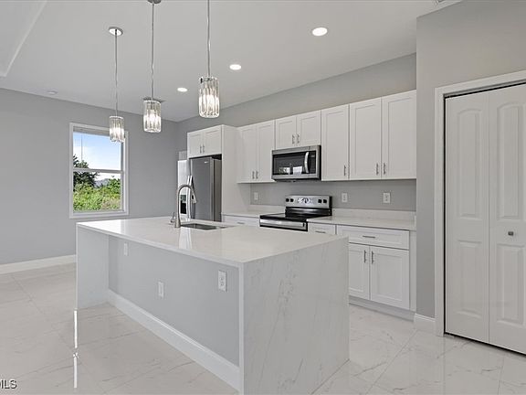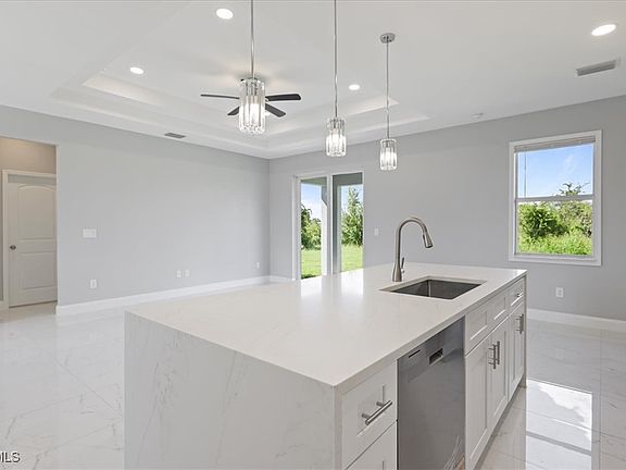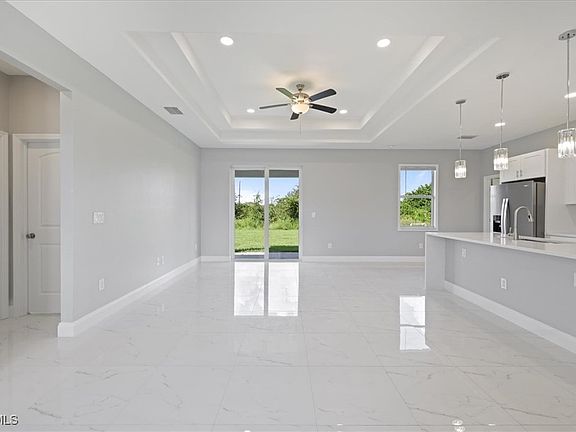 This stunning new construction is located in one of Lehigh’s most desirable areas, offering rare privacy with no neighbors on either side or behind the home. Step inside to an open floor plan with porcelain tile throughout, tray ceilings, and impact-resistant doors and windows. The gourmet kitchen showcases quartz countertops, waterfall island, stainless steel appliances, and custom light fixtures and cabinetry. The spacious primary suite features a walk-in closet, dual sinks, and a beautifully tiled walk-in shower. This home is complete with a sprinkler system, extended outdoor space, and plenty of room to add a pool, perfect for relaxing or entertaining. Make this home yours today!