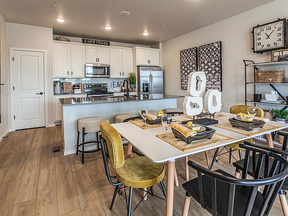 The Morgan floorplan is a cute 2 bed, 2 bath condo with generous entertaining space. The front entry leads you into the cozy living room and extends into the kitchen. Down the hall you will find a guest bedroom or office space, the guest bathroom and a quaint mudroom/laundry room right off the garage. At the end of the hall you will find the owner's suite with large, beautiful windows and an impressive master bath. This unit has an attached garage. This unit will be finished with Stainless steel bakers joy appliance package, Grey concord maple cabinets, smoky oak vinyl plank flooring, grey quartz countertops, 3x6 white subway tile, and garage door opener with 2 remotes.Photos are from a completed home of the same floor plan, therefore finishes depicted may differ from those outlined below.Estimated Completion Date: April/May 2024*HOA includes Water, Sewer, and FC Connexion Internet Service | Snow removal for sidewalks, walkways, and private streets | Landscaping | Building maintenance and insurance (exterior)*