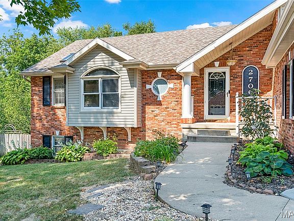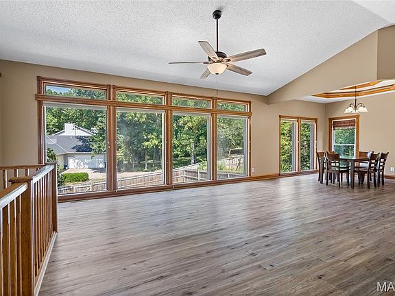 Beautiful 5-bedroom, 3-bath ranch with a walk-out lower level, brick and polymer siding exterior, and spacious 3-car garage! The main floor features a large primary suite with an en suite bath and generous walk-in closet, complemented by a second bedroom, full bath, and convenient laundry room. The open-concept living and dining area is bathed in natural light from a wall of windows and showcases vaulted/tray ceilings and warm wooden trim. The kitchen has Corian counters, appliances updated in 2021, and an eat-in breakfast area with a pass-through to the living area, flowing seamlessly to a private deck—perfect for morning coffee or casual meals.
