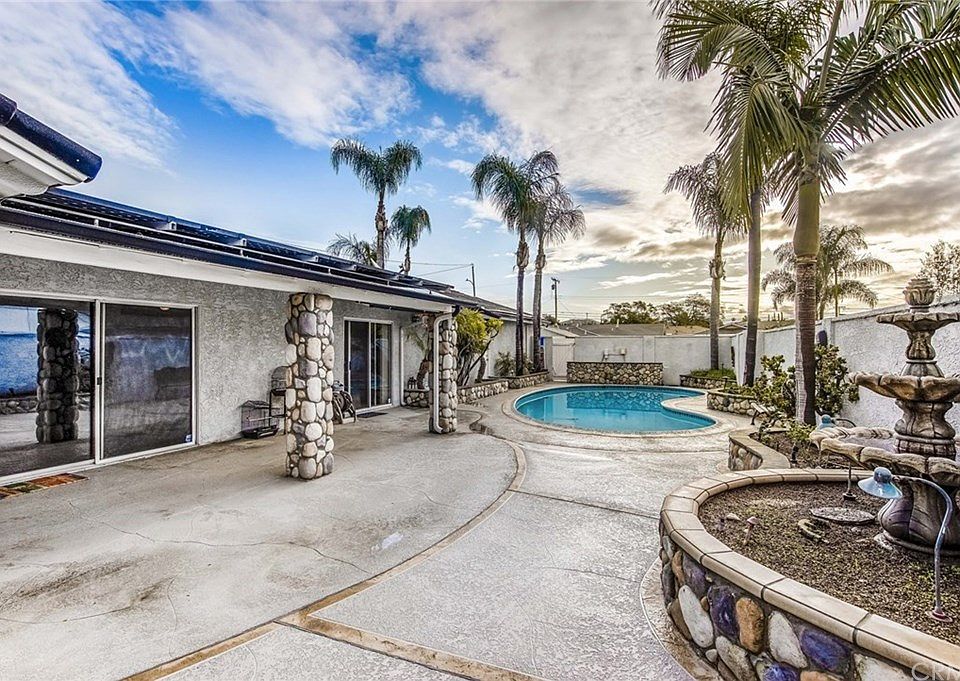 Fantastic opportunity to live in a meticulously maintained and very private single level corner lot home located on quiet street in east Orange. This one level, 4bed/3bath plus den which is easily converted to an ensuite bedroom has new carpet and has been freshly painted. This home has a pool, jacuzzi and a 3 car garage with two driveways which is very rare in this neighborhood!. Solar system for the electricity and pool is fully paid for and SCE bill is approximately $0.83/mo.! Newer HVAC, crown molding, 3 skylights, recessed lighting, security system, CCTV, Exterior walls, garage and attic heavily insulated, loft above garage and 2 driveways provide parking for 6+ vehicles. Home is very clean and well cared for. Centrally located, close to 55,22,5,91 and 57 fry. Award winning schools. Don't miss out!