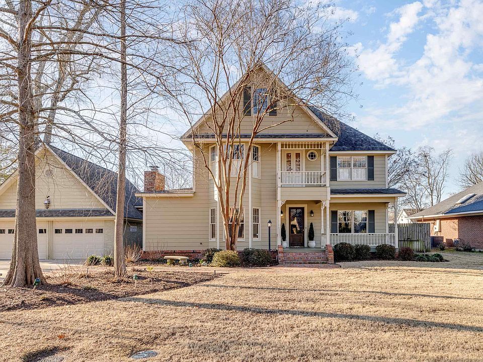 Nestled in the heart of River Oaks Subdivision, this charming Victorian-style residence welcomes you with its timeless elegance and modern amenities. Boasting four bedrooms and three full baths, plus one partial bath, this home seamlessly combines classic architecture with contemporary comforts. As you enter through the intricate front door, you are greeted by the warm color of the brick floors that lead you through the well-designed layout. The kitchen, a culinary haven, features exquisite granite countertops, complemented by a Thermotek range complete with a griddle, stainless steel appliances, and a convenient walk-in pantry. Entertain guests effortlessly in the spacious living area anchored by a magnificent wood-burning fireplace, perfect for cozy gatherings during colder evenings. Adjacent to the living space, a wet bar adorned with a wine rack invites you to create and share delightful moments with family and friends. The master suite, a tranquil retreat, offers a private oasis with its en-suite bathroom, complete with a luxurious soaking tub and shower. Three additional bedrooms provide ample space for family or guests, each designed with comfort and style in mind. Step outside to discover a sprawling backyard oasis, featuring a covered patio and an open deck, creating the ideal setting for entertaining or simply enjoying the serene surroundings. A French drain ensures proper drainage, maintaining the pristine condition of the outdoor space. But the allure doesn't end there—picture a charming outside mini-retreat, a versatile space that could serve as your next garden office or work office. This delightful addition opens up possibilities for creativity and productivity, allowing you to tailor the space to meet your individual needs and preferences. In summary, this Victorian-style home seamlessly merges classic charm with modern convenience, offering a haven of comfort, style, and versatility for every aspect of your lifestyle. Welcome home to a perfect