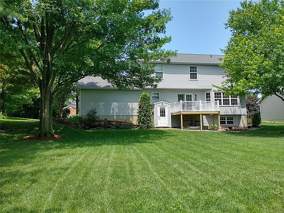 Immaculate 2 story home with an oversized garage, finished lower level, amazing, flat yard and much more! This home, in the heart of Edwardsville, is only a 10 min walk to the bike trails. The main level has an updated kitchen w/ custom, Amish cabinets, Cambria Quartz counters, a double oven, & a pantry. The kitchen walks out to the NEW composite deck & is open to the living room that has a bay window & gas fireplace. The main floor also has an elegant 2 story foyer & 2 additional rooms that can be a dining room, office or playroom depending on your needs. Hardwood runs throughout most of the main floor & almost the entire house was professionally painted in 2022. The spacious finished basement is perfect for entertaining or relaxing! This home has 4 bedrooms on the second floor, including a wonderful owner's suite with a vaulted ceiling, private bathroom with a separate tub/shower, and walk-in closet. NEW roof, gutters, & some siding in 2017. NEW furnace 2019. NEW AC 2010.