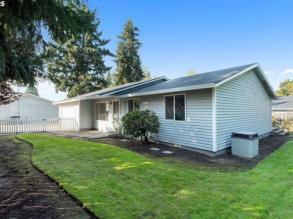 Well-maintained 3-bedroom, 2-bathroom home with 1,448 square feet of comfortable living space. Situated on a private 10,000 sq. ft. flag lot, this property offers both privacy and a beautifully landscaped yard with room to relax, garden, or entertain.The one-level layout features bright living areas with a natural flow throughout. The kitchen and dining spaces connect seamlessly to the outdoors, making it easy to enjoy indoor/outdoor living. A BRAND-NEW ROOF (September 2025) provides lasting peace of mind.Three bedrooms share a conveniently located hall bathroom, with an additional full bathroom to serve family and guests. Designed for comfort and easy living, this home is move-in ready and well cared for.Enjoy the best of both worlds — a tucked-away setting with quick access to local amenities. FYI print marketing has a typo-2 full baths and NOT 2.5 baths. [Home Energy Score = 5. HES Report at https://rpt.greenbuildingregistry.com/hes/OR10241911]