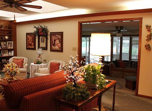 Meticulous treed Ranch with separate living quarters. Living Room offers fplc, built ins, 2 skylights, indirect lighting, and is open to an Eat-In Kitchen w/custom built cabinets, sink/gas stove top in island. Formal Dining with built in. Large Master Bdrm has 2 closets with a Sitting Room that has access to Family Rm. Laundry Rm w/sink. Tile Entry. Screened In Porch. Fenced backyard w/3rd garage. Pull down attic. 2 car attached & 1 detached garage. Lots of extra storage in bsmt. Double drive w/extra parking.