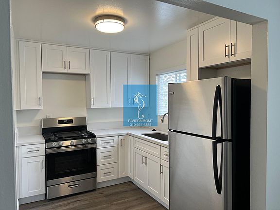 1BR 1BA Apartment in North Redondo Beach Our 1 bed 1 bath available units feature luxury vinyl plank flooring throughout, custom quartz counter tops accompanied by an extra deep under-mount stainless steel sink, white shaker cabinets, custom tile backsplash, and all stainless steel appliances. The bathroom includes tiled enclosure, large chrome shower head, upgraded ceiling fans and fixtures. Unit also features 1 garage parking space. Recently renovated, shared laundry room on-site. Located near 405 freeway, shopping centers, minutes from the beach and El Segundo business communities such as the PCT Towers, Boeing, and Northrop Grumman. No pets. Please call for viewing instructions. Owner pays for water and trash.