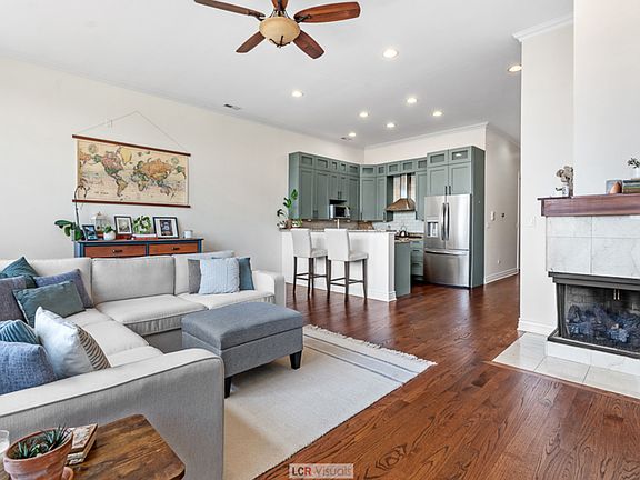 Live the Penthouse lifestyle with incredible city skyline views and enviable privacy from your perch in the sky! Ideal location in vibrant West Town - an energetic neighborhood offering proximity to the Loop and center of the City, amidst a lovely residential setting. So spacious with 3 bedrooms and 2 baths, this condominium home has the room to grow with your needs! Soaring 12 foot ceilings enhance the feel of the expanse of the wide scale floor plan! Cozy up in Chicago's long winters with the warmth of a NEW gas fireplace. Sun lovers will delight in the front balcony with it's south facing orientation capturing natural light throughout the days and throughout the seasons! The kitchen WOWS with its cool hued colors, sleek granite counter tops, a dining bar and an open concept space for your table setting. The en-suite primary bedroom kicks it up a notch with its impressive space, including a walk-in closet and a private balcony! The tumbled marble primary bath features a double sink vanity, a sleek glass shower and an oversize soaking tub, too! Top of the line full size front loading washer and dryer makes laundry a breeze. A rare find in the city - parking for 2 cars! Great sips and small bites are all nearby, from cafes to coffee to spirits, you'll enjoy the dining spots all outside your door, right in the neighborhood. All the NEWS: Hardwood floors (April, 2020) Roof replacement (June, 2022) Fireplace installed (December, 2020) Tankless Water Heater (March, 2020) Dishwasher and Refrigerator (September, 2022) Front Decking (May 2023) Impeccably maintained and move-in ready, this condominium home is a great choice to be your new home!