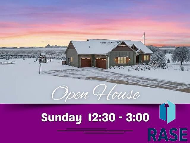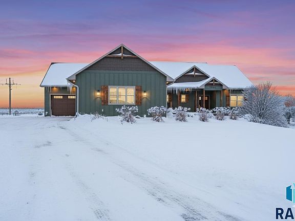 It looks like a winter wonderland out here! Set on 1.71 acres in Twin Creeks within the Harrisburg School District, this 2020 ranch home combines peaceful acreage living with city convenience. The 6 bedroom, 4 bath layout features an open concept vaulted great room with custom beams, gas fireplace, engineered bamboo floors, and a fabulous kitchen with granite countertops, double ovens, walk in pantry and custom cabinetry. Three bedrooms on the main level include a private primary suite with tile shower and walk in closet. Main floor laundry with a huge mudroom and half bath for convenience, and there is a second laundry hookup in the lower level. The recently finished basement feels like a cozy winter retreat, with a large family and rec room, stone surround gas fireplace, wet bar, three additional bedrooms, and two bathrooms that are ideal for guests, hobbies, office space, or multigenerational living. In winter, you can watch the snow fall from the screened and covered back porch or great your guests on the welcoming front porch. The level yard is ready for year round play and offers space for a future outbuilding. The oversized 3 stall garage and concrete driveway provide plenty of parking and storage. This Twin Creeks acreage neighborhood offers a quiet country feel yet is conveniently close to parks, coffee shops, groceries, Harrisburg, and Sioux Falls amenities. Perfect for buyers searching for a Harrisburg ranch style acreage home home with nothing to do but just move in.