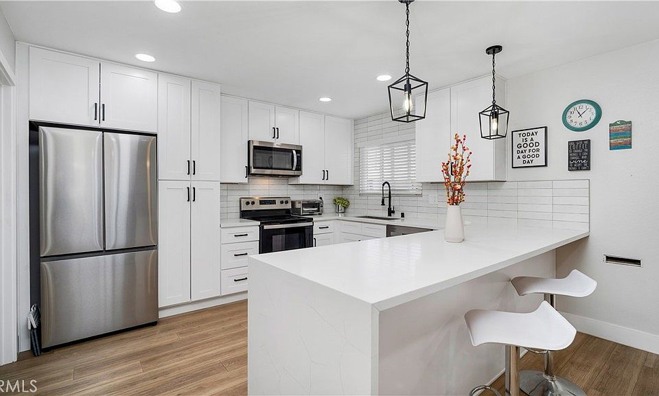 Welcome to 27061 Sun City Blvd a beautifully reimagined retreat designed for comfort, style, and effortless living in the heart of Sun City’s premier 55+ community. Step into a space where every detail has been thoughtfully curated, offering over $50,000 in high-end upgrades and a serene atmosphere. As you enter, the home immediately welcomes you with its bright, open layout and warm modern finishes. The brand-new waterproof oak-tone laminate flooring flows throughout, adding both elegance and practicality. The fully redesigned kitchen stands as the centerpiece of the home, enhanced with expanded soft-closing white shaker cabinetry, premium stainless steel appliances, including a dishwasher, and a gorgeous combination of oversized subway tile and waterfall quartz countertops. It’s the perfect space to cook, entertain, or simply enjoy your morning coffee. The living room offers comfort and style with recessed lighting, a designer board-and-batten accent wall, and a large picture window framing the peaceful association garden, inviting you to slow down and savor the moment. The spacious bedroom feels like a true retreat, complete with a sliding door that opens to your private patio, ideal for relaxing outdoors, gardening, or enjoying the quiet evening breeze. The beautifully updated bathroom features a floor-to-ceiling tiled shower with a built-in niche and an elegant accent wall, creating a spa-like experience every day. The converted carport now a private garage adds convenience, secure parking, and additional storage space with a lockable closet. Living in the Sun City Civic Association means enjoying resort-style amenities designed for active adults: multiple pools, a large clubhouse, fitness activities, social groups, and events that create a sense of community and connection. Plus, you’re just moments from dining, grocery stores, and the community center walkable, convenient, and lifestyle-friendly. Whether you’re seeking a peaceful place to call home, a luxurious downsized lifestyle, or the perfect low-maintenance retreat, this completely renovated condo offers it all. Don’t miss the opportunity to experience it in person homes like this don’t come along often.