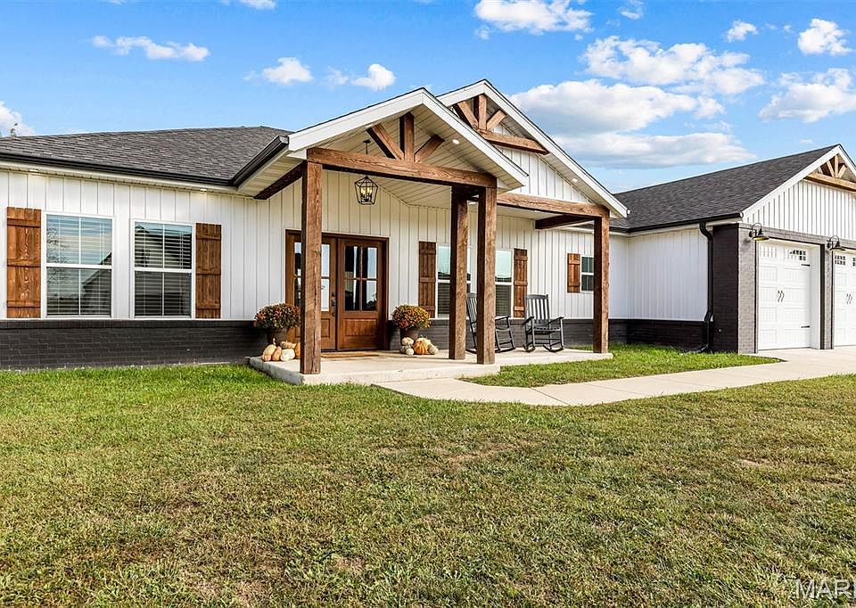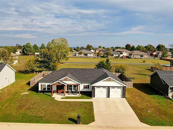 Home for sale North of Mtn. Grove. This home built in 2022 has many upgrades and custom features throughout. Vaulted ceilings in open concept living space, with floor to ceiling fireplace. The kitchen is where you will find custom, white, soft close cabinetry with beautiful quartz counter tops, and bottom pullout drawers. There is an oversized walk-in pantry with custom doors and so much space. The spacious primary suite has high ceilings and so much space! The beautiful bathroom includes a soaking tub, walk in shower, his and her vanity's, and a large walk in closet make this the perfect space. The split bedroom floor plan offers two more bedrooms and a full bath. Outside is a privacy fenced back yard with covered porches on the front and back of the home. This is a must see, move in ready property that will not disappoint you. Great location, quality build that is move in ready. Call today for your private viewing!