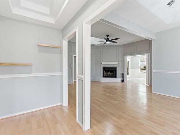 The spacious living room offers flexibility to create two separate living areas or enjoy one large open space centered around a cozy wood-burning fireplace. Throughout the home, you’ll notice thoughtful upgrades such as new ceiling fans, doors, chandeliers, hardware, and custom touches like barn doors and double-sink vanities in both bathrooms.