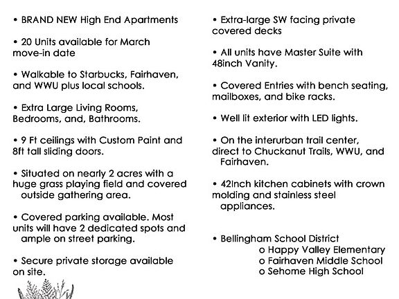 RENT SPECIAL: $1795/month and $1745 deposit for leases through summer 2018. 12 month leases also available at $1895/mo & $1845 deposit. Reserve your new high end home in Fairhaven now! Close to bus lines, parks, shopping, trails, and Fairhaven amenities. Beautifully finished w/ cherry cabinets, stainless steel appliances, washer/dryer, custom paint, and LED lighting. Sorry, no smoking/housing assistance. Storage units available for an additional $75/month. One small dog possible under 20 pounds, for non students with approval and 680+ credit score, $200 nonrefundable fee, $300 additional deposit, and an additional $35/month rent. Water/sewer/garbage included