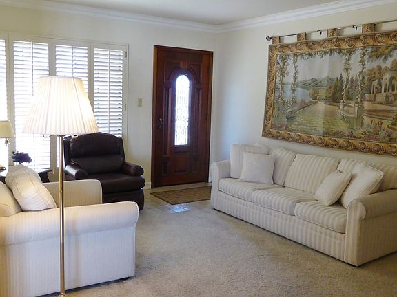Beautifully taken care of this home which offers a remodeled kitchen with white cabinets and Corian counter tops. Island with seating for four. Formal dining room with built in credenza and French doors overlooking patio. Three good size bedrooms. Master is enlarged and is in the back of the home. Central air and heat, updated windows and a newer roof. Nice backyard with a long driveway and a two car garage. This home is ready to move in.