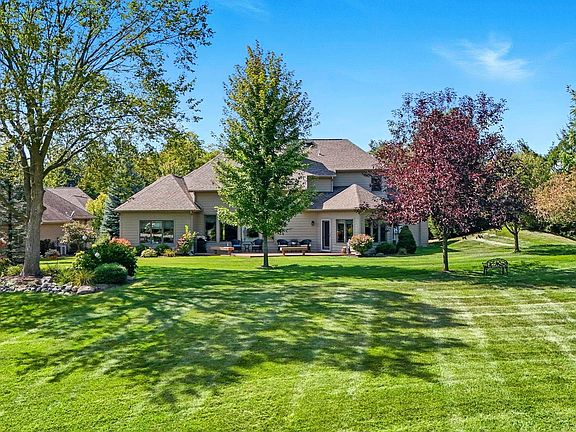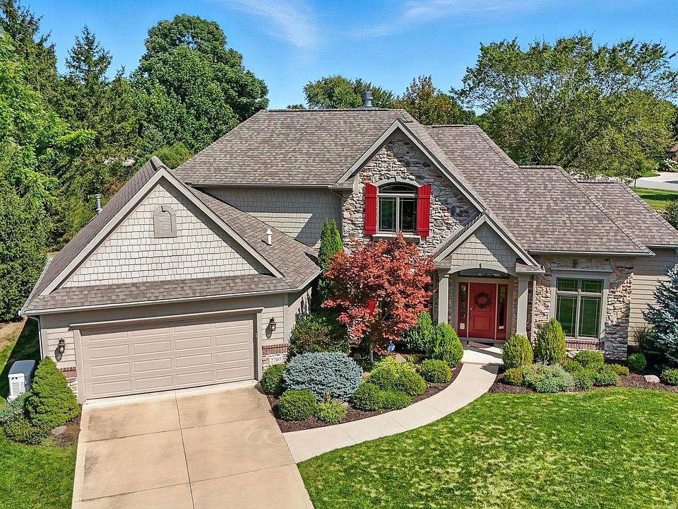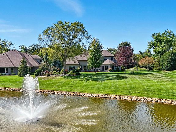 This is the view and setting you do not want to miss! Lush landscaping and trees abound in the exclusive community of the Parke. This 2600sq ft home is situated on a quiet culdesac with a spacious yard and a beautiful direct view of the fountain in the serene pond in the backyard. This villa offers a main level primary suite, new Taj Mahal quartz countertops, new custom tile backsplash in the kitchen, fresh paint and warm hardwood floors. The spacious main floor boasts a ton of natural light, spaces for formal dining and breakfast nook, and an office with french doors! Villa dues cover lawn care, snow removal and more. This turn key home is a must see-- come take a look before it's gone!