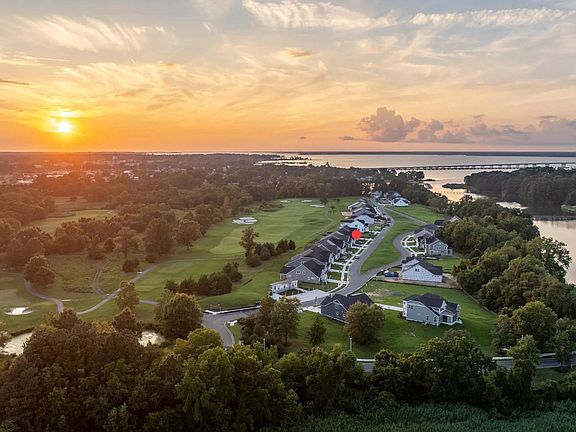Welcome to The Tides at River Marsh, where coastal Eastern Shore living meets resort-style amenities. This brand-new 3 BR, 2 BA Latitude model by DRB Homes is perfectly positioned along the 16th fairway of the River Marsh Golf Course, part of the Hyatt Regency Chesapeake Bay Resort community with optional access to the golf course, spa, and marina. Designed with an open, airy layout, the home features a great room concept with vaulted ceiling, gas fireplace, and seamless flow into the gourmet kitchen. The kitchen offers white cabinetry with gold hardware, glass-front accents, quartz countertops, farm sink, stainless steel appliances, gas cooktop, wall oven, center island with breakfast bar, and a separate dining area. Abundant cabinetry with under-cabinet lighting and a walk-in pantry provide exceptional storage. The great room opens to a screened rear porch overlooking landscaped grounds and lawn irrigation. The spacious primary suite includes a tray ceiling, walk-in closet, and a luxurious bath with free-standing soaking tub, ceramic tile walk-in shower, and dual-sink vanity. Two additional bedrooms share a beautifully finished ceramic tile hall bath. A welcoming foyer, recessed lighting throughout, pre-wiring for ceiling fans, and custom Hunter Douglas plantation shutters enhance the home’s style and comfort. A 2-car garage with automatic opener adds convenience and storage. The Tides at River Marsh will feature pickleball courts and a community pool, with optional marina and golf memberships offering boat dockage on the Choptank River and access to the acclaimed River Marsh Golf Course. More than a home—this is a lifestyle.