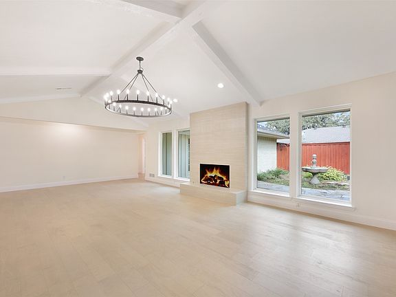 Cozy fireplaceStainless steel appliancesGorgeous waterfall islandModern backsplashCircular drivewayHuge walk-in closetThree roomy secondary bedrooms