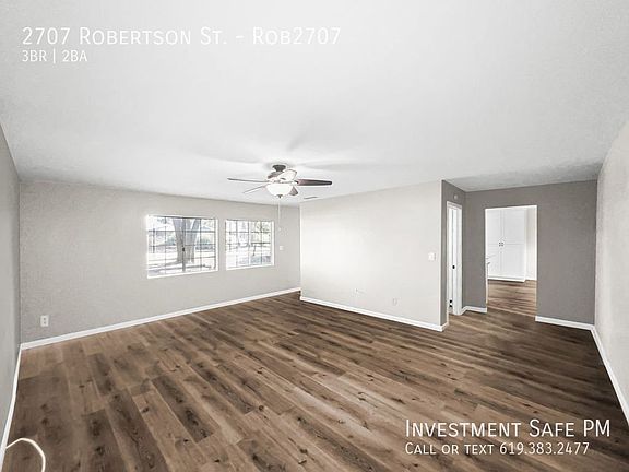 This 1500 square foot apartment home has 3 bedrooms and 2.0 bathrooms. This home is located at 2707 Robertson St #ROB2707, Ramona, CA 92065.