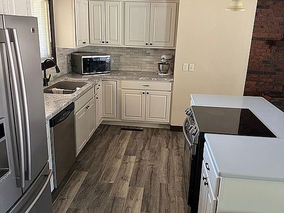 Check out this beautiful remodeled home located on a quiet cul-de-sac north of town. It features three bedrooms up two bedrooms down, three bathrooms, upstairs laundry room, wood burning fire place, two car extra long attached garage, shed, new fence & fire pit, lots of storage and so much more