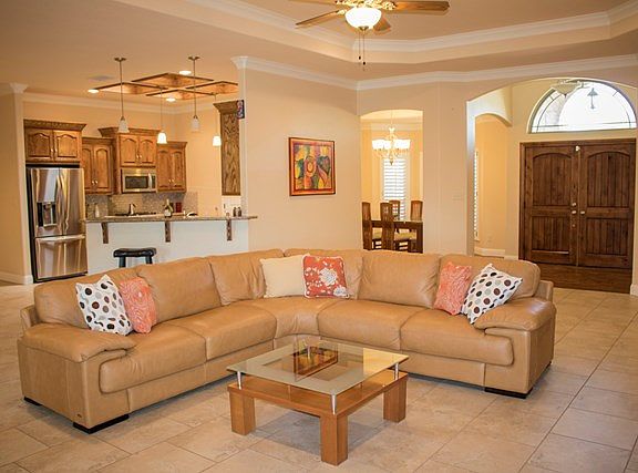 MOVE-IN READY in Mayfield Place Subdivision with open concept living/dining/kitchen and high ceilings. Stone Fireplace. Formal dining, breakfast area, & eat-at bar. Double ovens and gas range in kitchen w/ skylight above island. 4 bedrooms, 3 baths and separate laundry room w/sink. Great closets. 3-car rear-entry garage with extra parking pad. Water softener. Call to see today!