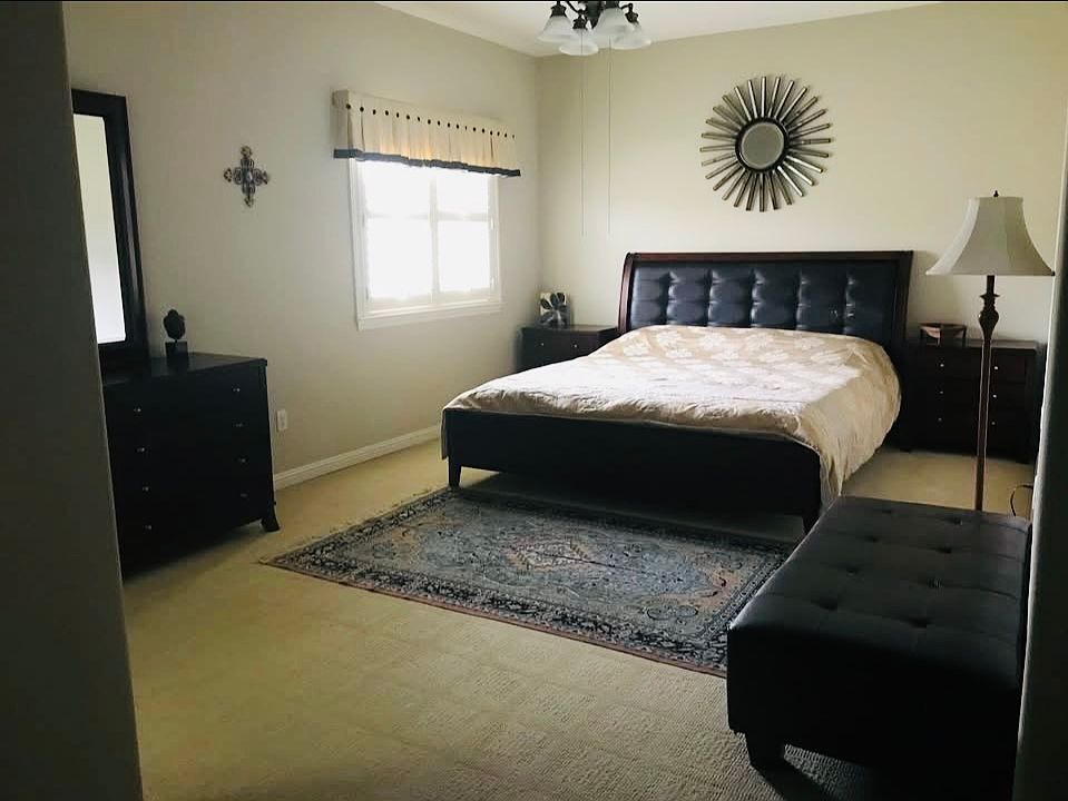 Large bedroom, approximately 400 sq feet in size, with ensuite bathroom is available in a 4-bedroom house in a cul-de-sac in East Simi valley. Close to the park, school, shopping center and freeway. Ample parking. The room is well lit and fully furnished with a California king-size bed, dresser, nightstands, chest, mini fridge, microwave along with a closet. It also has a ceiling fan and laminate floors. Rent $1400 per month with Security deposit $1000. Utilities included. I am okay with short- and long-term lease. I have a very friendly Maltese pet dog at home. This room is for one person only. drama free, working professionals. no remote working allowed from home