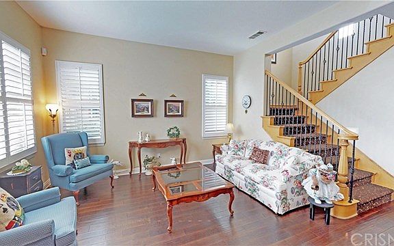 Picture yourself living in one of the most prestigious gated communities in Santa Clarita. Welcome to Valencia Westridge. The gorgeous model perfect adult occupied home features a very sought after downstairs Master Suite! Master bedroom and the spacious master bath, dual sinks, walk in shower, separate tub, large walk-in closet with built-in organizers. From the moment you open the front door you can tell this home is something special. You will notice the beautiful wood flooring, plantation shutters, custom wrought iron stair case railing, custom paint and designer carpet, custom wrought iron wine gate. You will be led through the well-appointed living room and formal dining room on your way to the large kitchen that opens to the family room. The kitchen features granite counters, stainless appliances, double ovens, large center island and plenty of storage, family room with fireplace and built-in media center. Upstairs you have 3 more bedrooms, one with it's own private bathroom + another full bathroom as well. After a long day enjoy your well-maintained backyard. All this plus a three-car garage with built in cabinets, excellent cul-de-sac location, and an HOA that offers 2 tennis courts, 2 pools and spas, club house facilities, basketball court, picnic tables, bbq's and tot lot!!! Westridge offers award winning schools, proximity to Valencia TPC, Valencia Country Club, Westfield Valencia Town Center, great restaurants, theaters, Westridge is "The Place To Be".